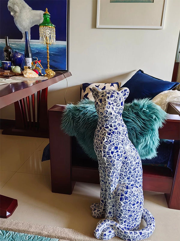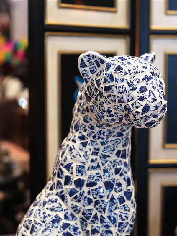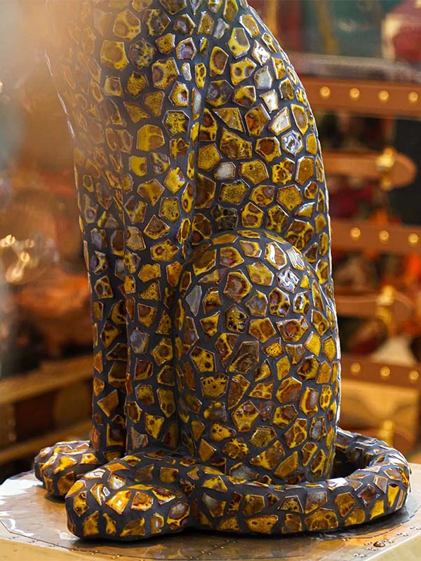 This ceramic Mosaic Animal Sculpture is a masterpiece, perfectly blending handcrafted ceramic tiles with a resin base to create an elegant and sophisticated design. Each ceramic tile is meticulously hand-laid by skilled artisans, ensuring that every sculpture is unique. The intricate mosaic patterns and vibrant colors give the sculpture a distinctive texture, making it a striking focal point in high-end commercial spaces and luxury residences.