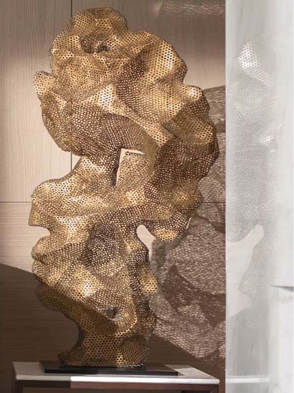 Unlike traditional sculptures, these works abandon solid shapes and instead use hollowing and cutting techniques to create a light and elegant visual effect. The metal material gives the sculptures tough and durable characteristics, while also highlighting the changes in gloss and texture. As the viewer's angle changes, the sculpture shape will also present different levels and three-dimensional senses, just like a dynamic artwork changing in front of your eyes.