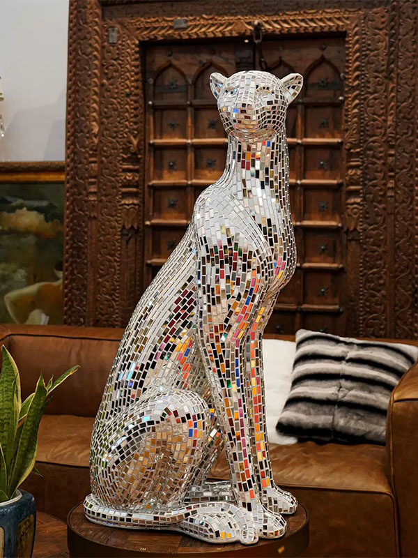 The Animal Leopard Sculpture is a beautiful and unique work of art designed and produced with the theme of leopard. It combines traditional sculpture techniques and. The size of the mosaic leopard sculpture can be customized according to the needs of customers. Mosaic Sculptures can be used as indoor or outdoor decorations, such as homes, offices, public buildings, gardens or parks. They are not only ornamental, but also show the taste and uniqueness of the owner, adding an artistic atmosphere to the environment.