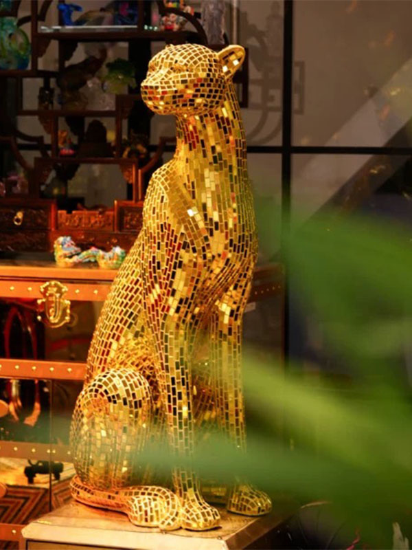 Customized resin glass mosaic leopard sculpture handmade lens crafts hotel KTV club light luxury floor sculpture