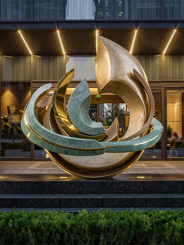 This type of outdoor metal Landmark Sculpture is widely used in high-end real estate projects, urban landscapes, cultural centers, and luxury commercial spaces, where durability, scale, and artistic impact are essential.